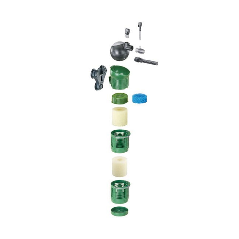 Konserwacja: Gdy zauważysz wyraźny spadek wydajności, wypłucz wkłady gąbkowe w wodzie spuszczonej z akwarium (nigdy pod kranem!).