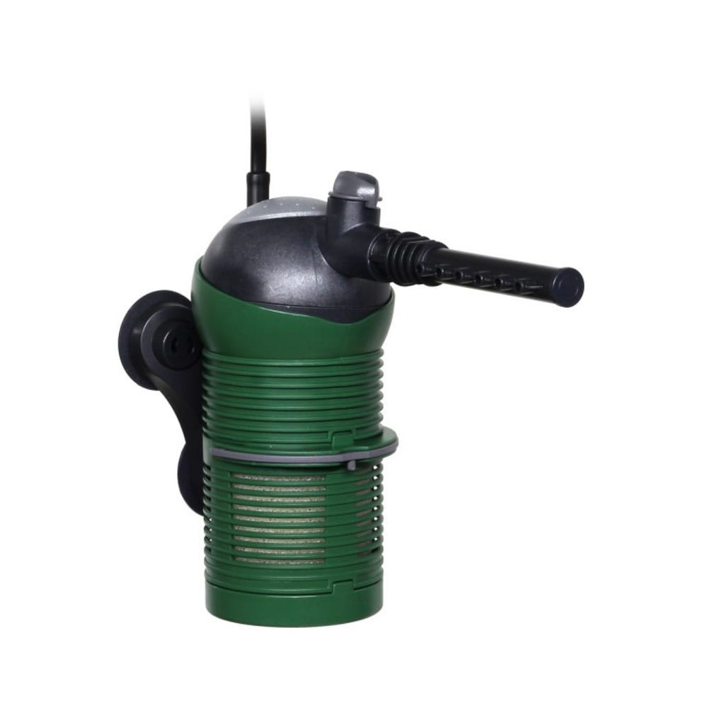 Montaż: Zamocuj uchwyt z przyssawkami na szybie akwarium, a następnie wsuń w niego korpus filtra.