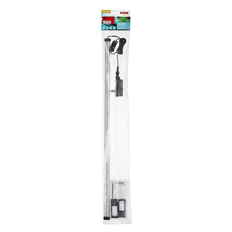 Oświetlenie LED EHEIM classicLED „daylight” jest dostępne w sześciu długościach od 550 do 1300 mm i można je łatwo zainstalować za pomocą wysuwanego wspornika montażowego. Taśma LED idealnie dopasowuje się do każdego akwarium do szerokości 1,30 m, zapewniając optymalne oświetlenie o kącie świecenia 120˚ aż do dna akwarium. Ultra kompaktowa i bardzo smukła konstrukcja mieści się pod wszystkimi pokrywami i dlatego może być stosowana w większości akwariów.