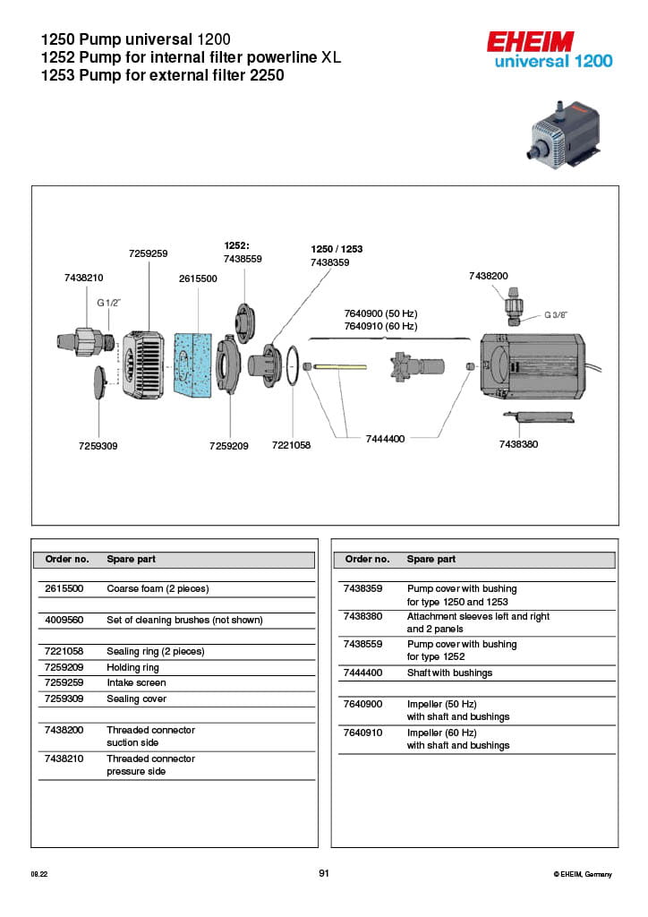 EHEIM universal 1200 1250 Pompa przelewowa z przewodem zasil. ogrodowym 10 m. (1250019)