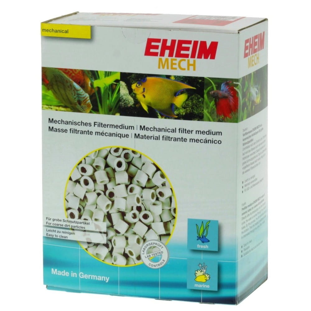 Bezpośrednio po wejściu do cyklu filtracji woda jest wirowana przez ceramiczne wydrążone korpusy. Zmniejsza to gruboziarniste cząsteczki brudu. Uzdatniona, wstępnie przefiltrowana woda przechodzi przez kolejne warstwy filtra. EHEIM MECH jest łatwy do czyszczenia i wielokrotnego użytku.