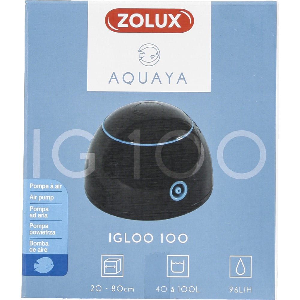 Cicho działająca pompa napowietrzająca Igloo zapewnia dopływ tlenu do wody, wytwarzając pęcherzyki powietrza poprzez dyfuzor (w zestawie). Sprzedawana jest wraz z zaworem przeciwzwrotnym i wężem silikonowym.
