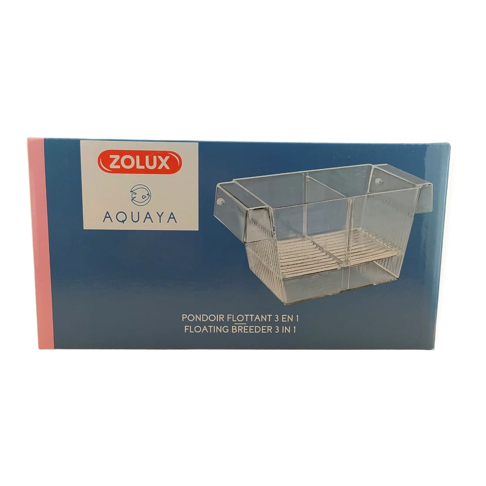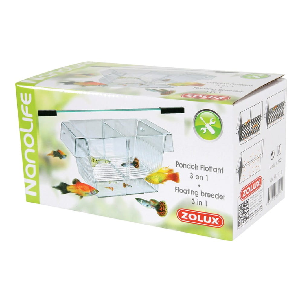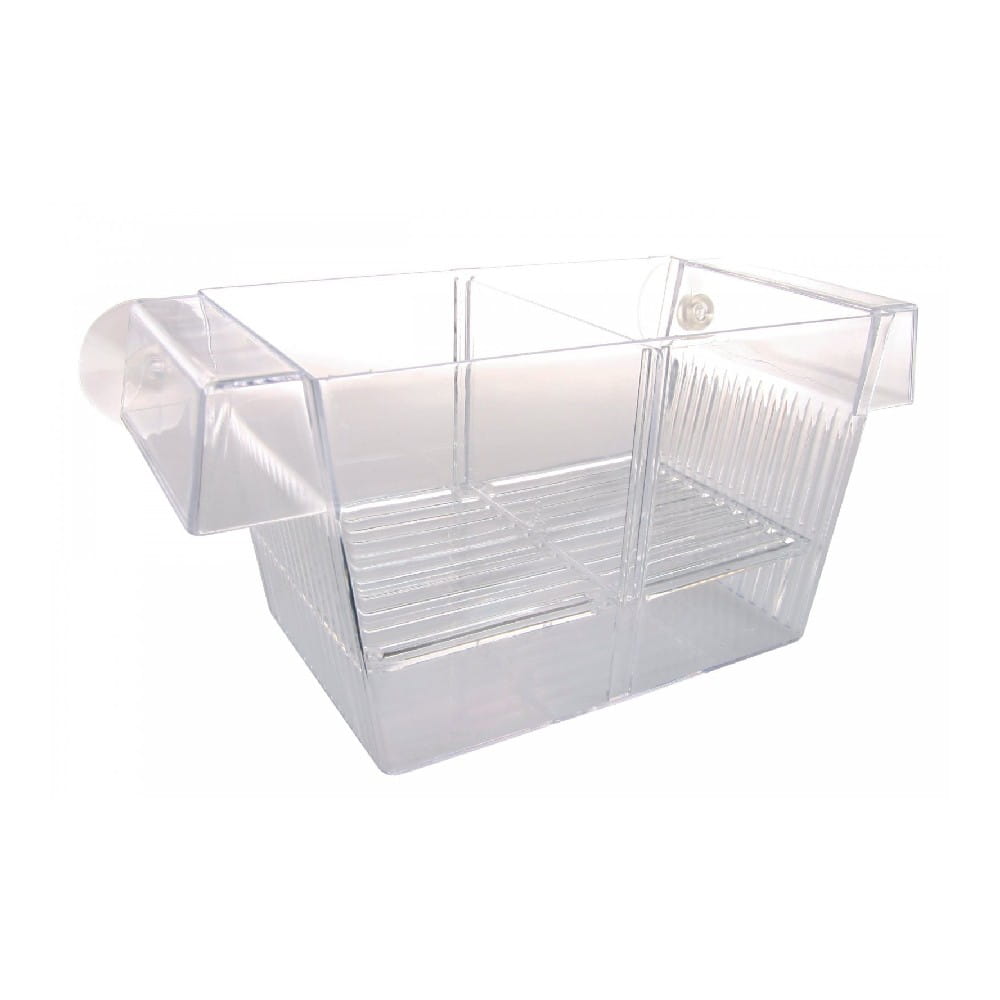 Kotnik pływający dla ryb żyworodnych -posiada kratkę zabezpieczającą narybek i ruchomą przegrodą. Może służyć do izolowania ryb chorych lub agresywnych. Sprzedawany z przyssawkami. Wymiary (sz. x dł. x wy.) [mm]: 205 x 105 x 98 mm