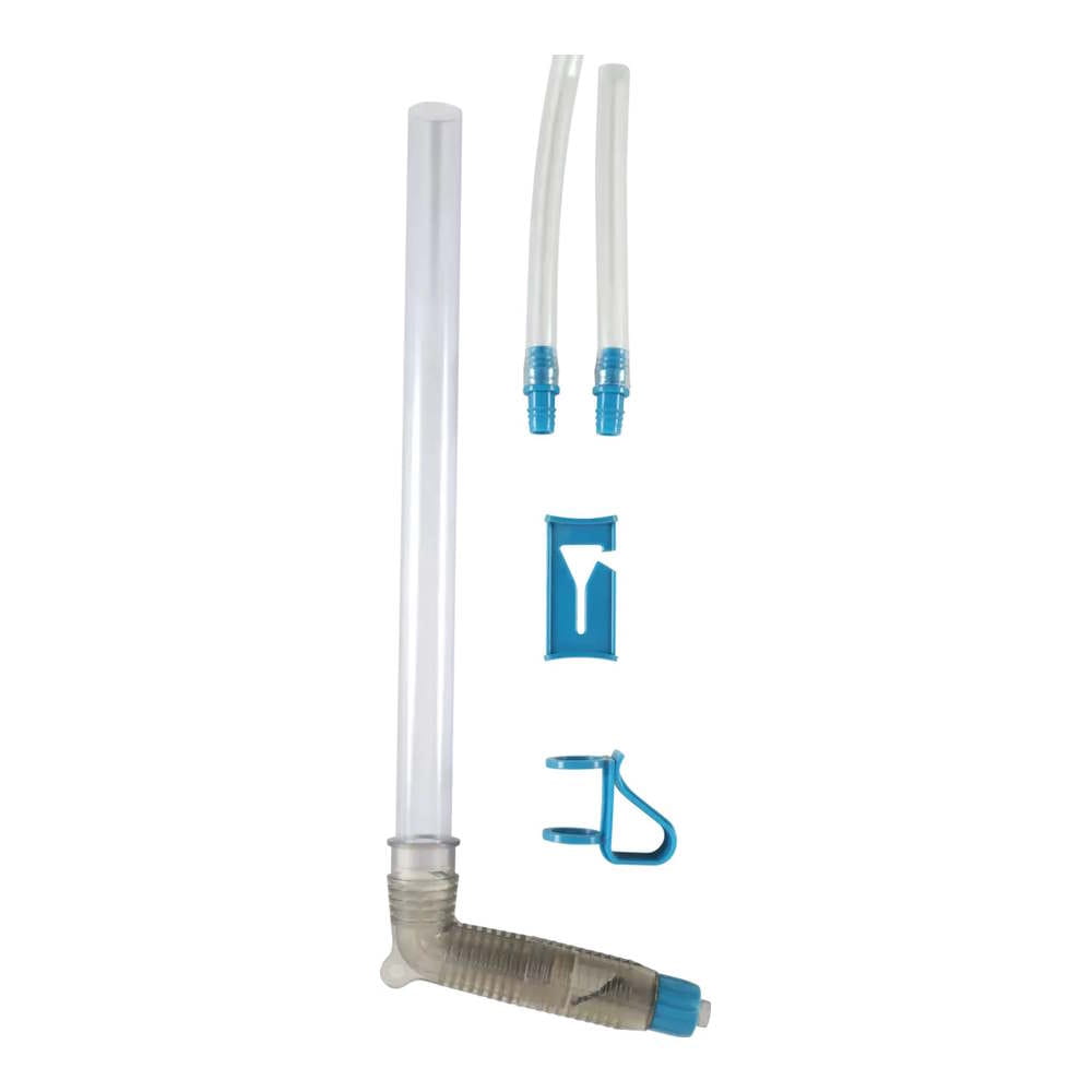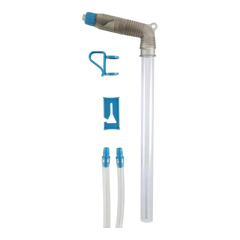 Ten samozasysający odmulacz umożliwia usuwanie nieczystości obecnych w podłożu akwarium, a także pozwala na częściowe bądź całkowite spuszczenie wody (do 120 L). Syfon, klipsy mocujące do wiaderka i klipsy redukujące przepływ wody są dołączone do opakowania.