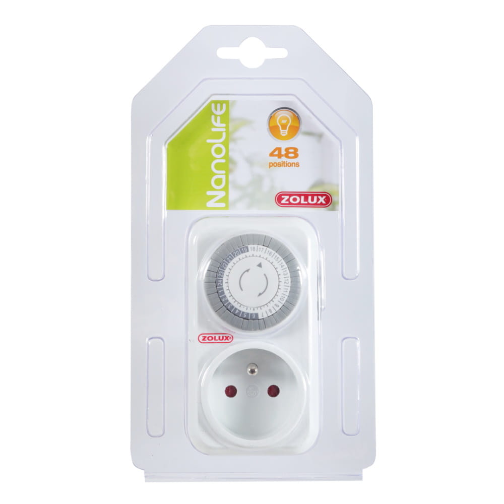 Mechaniczny programator dobowy umożliwia zautomatyzowanie procesu włączania i wyłączania oświetlenia i innych urządzeń zainstalowanych w akwarium i terrarium.